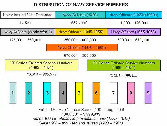 Significant Navy service numbers include:[2]