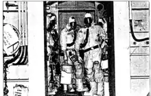 environment, the techs had to wear full-coverage protective clothing and gloves which called for specialized communication equipment. Each person was equipped with a Setcom GM-312 Face Mask Kit and a Setcom Portable radio cable assembly to interface the kit to a Motorola MX series radio worn on a belt. The Setcom Kit included a bone conduction microphone, a unique device designed to respond to voice vibrations transmitted through the skull. Since this microphone was not in the facial portion of the face mask, mask integrity was maintained. This specialized application made it possible for all communications to be recorded and studied to further the investigation into why there was an accident and how much damage it had caused.[3]