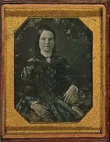 Herndon, Lincoln's law partner and biographer, attests to the depth of Lincoln's love for Ann Rutledge. An anonymous poem about suicide published locally three years after her death is widely attributed to Lincoln.[6][7] In contrast, his courting of Mary Owens was diffident. In 1837, Lincoln wrote to her from Springfield to give her an opportunity to break off their relationship. Lincoln wrote to a friend in 1838: "I knew she was oversize, but now she appeared a fair match for Falstaff".[8]