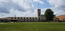 In September 1959, Shields High School was moved to completely new facilities on 61 acres (250,000 m2) at the west edge of Seymour. The 9th grade remained, along with grades 7 and 8, in the Shields High School facilities and became known as the Shields Junior High School. In addition to classroom and laboratory facilities, the new two-story building contained the school's administrative ad guidance offices, a 110-seat library, an 1100-seat auditorium, and a 300-seat cafeteria. In 1960 the football stadium and an all-purpose track were added to the high school campus. In 1968 work began on a new gymnasium, indoor swimming pool, and a separate academic facility consisting of ten classrooms, two science labs, and two industrial arts labs. These new facilities were ready for occupancy in the fall of 1970, and at that time, ninth grade students again became part of the high school. The gymnasium, dedicated in 1970, seats 8,228 and ranks as the largest high school gym in the United States.[3][4] It was renamed in honor of Lloyd E. Scott in 1998, who coached the boys’ basketball team from 1961-1974.[5] A fourth building, the power heating plant, varsity and reserve baseball diamonds, and eight tennis courts are also located on campus.