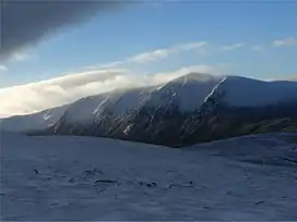 ![]() Sgòr Gaoith seen from Carn Odhar across Glen Einich | |