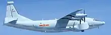 The Shaanxi Y-8 or Yunshuji-8 (Chinese: 运-8; pinyin: Yùn Bā) aircraft is a medium size medium range transport aircraft produced by Shaanxi Aircraft Corporation in China, based on the Soviet Antonov An-12. It has become one of China's most popular military and civilian transport/cargo aircraft, with many variants produced and exported. Although the An-12 is no longer made in Ukraine, the Chinese Y-8 continues to be upgraded and produced. An estimated 169 Y-8 aircraft had been built by 2010.