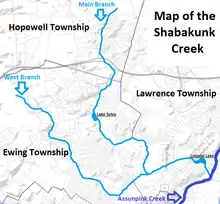 The Shabakunk Creek is a tributary of the Assunpink Creek in Mercer County, New Jersey, United States.[1] Via the Assunpink, its water ultimately flows into the Delaware River. The name Shabakunk is from the Lenape word meaning "shore land".[2]