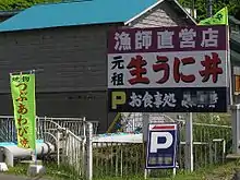 The Sakura-masu Salmon Sanctuary Center, located near Cape Kamui on the Yobetsu River, is an information center built to explain the ecology of the Oncorhynchus masou, cherry salmon. The center features aquariums of sakuramasu at various stages of its development.[6] The Misaki-no-Ichiba is a traditional open-air Japanese market near Cape Shakotan. Fresh seafood and local vegetables are sold at the market from April through November. Shakotan is noted for its catch of uni, or sea urchins.[6]