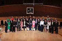 The first place prize was $100,000 in addition to performance contracts with several international orchestra, second place prize was $50,000, third place prize was $25,000, and fourth, fifth, and sixth prizes were $5,000 each. In addition, $10,000 was awarded for the best performance of the Chinese work and two Isaac Stern Human Spirit Awards were awarded for $10,000 each. The Isaac Stern Award is awarded to "an individual who is deemed to have made an outstanding contribution to our understanding of humanity through the medium of music."[8] In 2016, one award was presented to Negin Khpalwak, an Afghan woman conductor who directs an orchestra for women in Afghanistan. The other award was presented to Wu Taoxiang and Du Zhengquan, who founded a middle-school ensemble in China called the Einstein Orchestra.