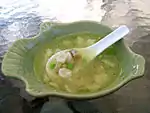 | Fu Shan mutton soup | 傅山頭腦 | 傅山头脑 | Fù Shān tóunǎo | ![]() | A soup made from lamb, rice wine, yam and other spices. Despite its name, it has nothing to do with brains. It is named after Fu Shan (傅山; 1607–1684), a scholar and artist from Taiyuan. It is traditionally enjoyed during winter and is said to be nutritious. |
