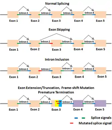 Numerous diseases have been caused by cryptic splice site mutations or usage of cryptic splice sites due to the mutations in authentic splice sites.[83][84][85][86][87]