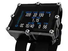 With the Predator, Shearwater also introduced bluetooth to allow easier syncing with their desktop software.[2][8] Their reason for the move to bluetooth was to make a computer that could be used on multiple operating systems.[2] The Predator's two button design has been called "intuitive and easy to use".[10] The top-of-the-line Predator will also allow for up to five breathing gases for the rebreather and up to five bail-out gasses.[9] The user can make gas switches on the computer at any point during the dive.[10]