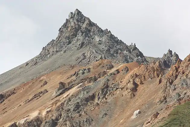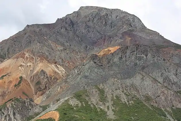 Sheep Mountain is a 6,223-foot (1,897 m) elevation summit located 50 mi (80 km) northeast of Palmer in the southern Talkeetna Mountains of the U.S. state of Alaska.[3] This landmark is set midway between Palmer and Glennallen, with the Glenn Highway traversing the southern base of this mountain at mile 113. The mountain is situated 1.6 mi (3 km) west-southwest of Gunsight Mountain, and 10.75 mi (17 km) northeast of Mount Wickersham.[1] The mountain's local name was reported in 1906 by U.S. Geological Survey.[4] It is called Beznae, meaning "(a type of) Stone", in the Ahtna language.[3][5]