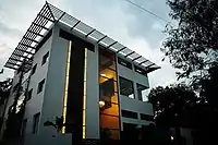 She is considered as one of India's leading architects[24] and is counted among the most influential female architects in the world today, having designed and completed over 1200 architectural projects,[25] many of which are known for use of local arts, culture and heritage as inspiration for her designs.[26][27] She is known for architectural theories surrounding Reciprocity in Design.[28] Her work ranges from the low-cost Reciprocal House for the socio-economically underprivileged that she designed on invitation from the World Bank in 1987,[29][30][31] to the first of its kind energy efficient commercial buildings, custom bungalows, residential communities, integrated townships, industrial facilities, art museums, sports stadiums, centers of education, public infrastructure and luxury hotels.[32][33] Her research findings are particularly relevant in high-density rapidly developing economies[34]