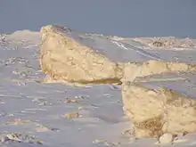 Shelf ice is ice that forms when a portion of a lake surface freezes. It is often then washed upon the shore. The phenomenon is common within the Great Lakes.[1]