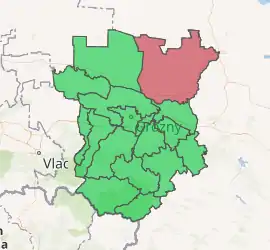 Shelkovskoy District (Russian: Шелковско́й райо́н; Chechen: Терка-Дехьаран кӏошт, Terka-Deẋaran k̇oşt) is an administrative[1] and municipal[5] district (raion), one of the fifteen in the Chechen Republic, Russia. It is located in the northeast of the republic. The area of the district is 3,000 square kilometers (1,200 sq mi).[2] Its administrative center is the rural locality (a stanitsa) of Shelkovskaya.[1] Population: 53,548 (2010 Census);[3] 50,233 (2002 Census);[7] 44,975 (1989 Census).[8] The population of Shelkovskaya accounts for 20.8% of the district's total population.[3]
