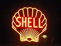 The Shell Oil Company sign was built in a Moderne style in 1933 by Donnelly Electric Manufacturing Company, and was originally located on the Shell Company building in Boston on Commonwealth Avenue, which now houses Boston University Academy.