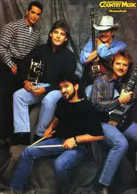 Shenandoah is an American country music band founded in Muscle Shoals, Alabama, in 1984 by Marty Raybon (lead vocals, acoustic guitar), Ralph Ezell (bass guitar, backing vocals), Stan Thorn (keyboards, backing vocals), Jim Seales (lead guitar, backing vocals), and Mike McGuire (drums, background vocals). Thorn and Ezell left the band in the mid-1990s, with Rocky Thacker taking over on bass guitar; Keyboardist Stan Munsey joined the line up in 1995, until his departure in 2018. The band split up in 1997 after Raybon left. Seales and McGuire reformed the band in 2000 with lead singer Brent Lamb, who was in turn replaced by Curtis Wright and then by Jimmy Yeary. Ezell rejoined in the early 2000s, and after his 2007 death, he was replaced by Mike Folsom. Raybon returned to the band in 2014.[1] That same year, Jamie Michael replaced the retiring Jim Seales on lead guitar.