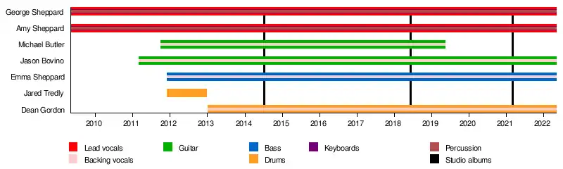 The Sheppard siblings were born and grew up in Port Moresby, Papua New Guinea to parents Greg and Linda Sheppard, where they attended the Sir Hubert Murray International (primary) School (now part of the Ela Murray International School [TEMIS for short] chain).[1] The family relocated to Brisbane, where Amy attended Somerville House for secondary education; by 2009, she was studying music at TAFE Queensland Brisbane.[1] After attending Brisbane Boys College in 2004, George shifted to Sydney; there he "toyed" with an acting career before returning to Brisbane six years later.[1] Youngest sister Emma learned to play bass guitar while enrolled at Somerville House; she officially joined the band after graduating in 2011.[1][2]