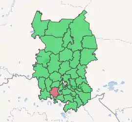 Sherbakulsky District (Russian: Шербаку́льский райо́н; Kazakh: Шарбақкөл ауданы, Sharbaqkól aýdany) is an administrative[1] and municipal[6] district (raion), one of the thirty-two in Omsk Oblast, Russia. It is located in the southwest of the oblast on the border with Kazakhstan. The area of the district is 2,300 square kilometers (890 sq mi). Its administrative center is the urban locality (a work settlement) of Sherbakul.[1] Population: 21,342 (2010 Census);[3] 25,486 (2002 Census);[8] 29,906 (1989 Census).[9] The population of Sherbakul accounts for 32.7% of the district's total population.[3]