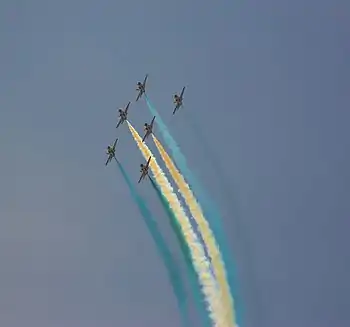 Sherdils (Urdu: ﺸﻴر دﻝ English: Lion Hearts) is the aerobatics display team of the Pakistan Air Force (PAF) & Royal Pakistan Air Scouts (RPAS). The Sherdils are based at the Pakistan Air Force Academy, Risalpur, Pakistan and consist of nine Karakoram K-8P aircraft.