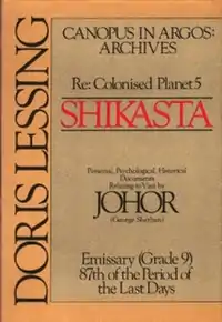 Re: Colonised Planet 5, Shikasta (often shortened to Shikasta) is a 1979 science fiction novel by Doris Lessing, and is the first book in her five-book Canopus in Argos series. It was first published in the United States in October 1979 by Alfred A. Knopf, and in the United Kingdom in November 1979 by Jonathan Cape. Shikasta is also the name of the fictional planet featured in the novel.