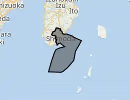 Shimoda (下田市, Shimoda-shi) is a city and port located in Shizuoka Prefecture, Japan. As of 1 August 2019, the city had an estimated population of 21,402 in 10,787 households,[1] and a population density of 200 persons per km2. The total area of the city is 104.71 square kilometres (40.43 sq mi). In the 1850s, Japan was in political crisis over its increasing inability to maintain its national seclusion policy and the issue of what relations, if any, it should have with foreign powers. For a few years, Shimoda was central to this debate.