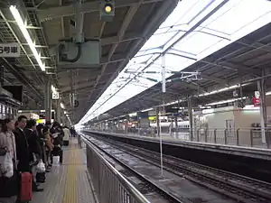 Shin-Osaka Station (新大阪駅, Shin-Ōsaka-eki)[lower-alpha 1] is a railway station in Yodogawa-ku, Osaka, Japan. It is the western terminus of the high-speed Tōkaidō Shinkansen line from Tokyo, and the eastern terminus of the San'yō Shinkansen. The lines are physically joined, and many trains offer through service.