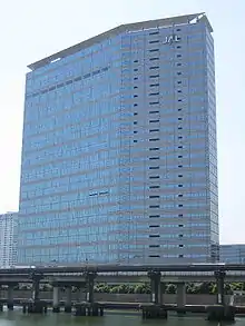 Japan Airlines (JAL), the head office of its subsidiary JAL Hotels, and registered offices of JAL Express and JALways are located in the Tennōzu Isle area.[33][34][35][36][37] In addition, Jalux, a subsidiary, has its head office in the I·S Building.[38] One group of employees moved into the building on July 26, 2010, and one on August 2, 2010.[39]