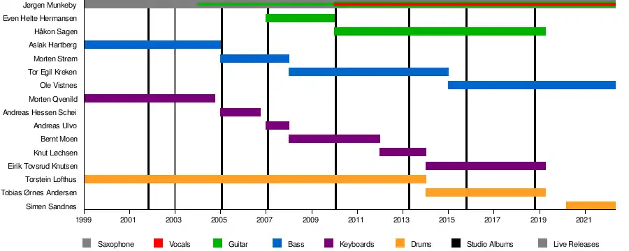 - Jørgen Munkeby – saxophone (1999–present), flute, clarinet (1999–2007), guitar (2004–present), lead vocals (2010–present)