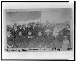 The Shinnecock were at home on the water, long being fishermen and sailors around the island. Through the 19th century, Shinnecock men worked as fishermen and sailors on the whaling ships based at Sag Harbor and other local ports. It was said that not a ship left Eastern Long Island without at least 1 Shinnecock male on board.[8] In December 1876, ten Shinnecock men died while trying to save a ship stranded off East Hampton.[9] The tribe is famous in local lore for such heroic efforts. At the start of the 20th century, the Shinnecock were described as "daring seamen," and "furnishin[g] efficient recruits to the United States Life Saving Service" (Coast Guard).[10]