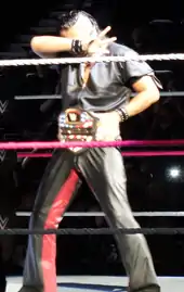 Vividly and unrestrainedly expressive, Nakamura portrays a wildly random and erratic mixed martial arts enigma, emotionally charged by the sound of violins.[6][7][8] A pre-WWE gimmick, Nakamura played the character in other wrestling companies that he was contracted to prior.[9] Nakamura's wrestling style is not merely gimmick as he has notably competed in mixed martial arts, amassing a 3–1 (1) record.