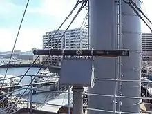 The Mark 33 GFCS was a power-driven fire control director, less advanced than the Mark 37. The Mark 33 GFCS used a Mark 10 Rangekeeper, analog fire-control computer. The entire rangekeeper was mounted in an open director rather than in a separate plotting room as in the RN HACS, or the later Mark 37 GFCS, and this made it difficult to upgrade the Mark 33 GFCS.[18] It could compute firing solutions for targets moving at up to 320 knots, or 400 knots in a dive. Its installations started in the late 1930s on destroyers, cruisers and aircraft carriers with two Mark 33 directors mounted fore and aft of the island. They had no fire-control radar initially, and were aimed only by sight. After 1942, some of these directors were enclosed and had a Mark 4 fire-control radar added to the roof of the director, while others had a Mark 4 radar added over the open director. With the Mark 4 large aircraft at up to 40,000 yards could be targeted. It had less range against low-flying aircraft, and large surface ships had to be within 30,000 yards. With radar, targets could be seen and hit accurately at night, and through weather.[19] The Mark 33 and 37 systems used tachymetric target motion prediction.[18] The USN never considered the Mark 33 to be a satisfactory system, but wartime production problems, and the added weight and space requirements of the Mark 37 precluded phasing out the Mark 33: