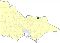 The Shire of Chiltern was a local government area located about 280 kilometres (174 mi) north-northeast of Melbourne, the state capital of Victoria, Australia. The shire covered an area of 501.64 square kilometres (193.7 sq mi), and existed from 1862 until 1994.