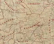 The Hughenden Division was established on 20 July 1882 under the Divisional Boards Act 1879.[3] On 20 April 1887, the Borough of Hughenden was constituted separately as a municipality for the emerging town of Hughenden.[4]