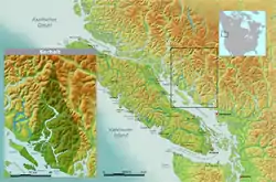 The Sechelt First Nations settlement included four villages in the area now called British Columbia, on the Sunshine Coast, two in Jervis Inlet, and one each on Pender Harbour and on Sechelt Inlet.[1] As the Europeans settled in the region, the Sechelt people experienced numerous changes. Disease brought over by the Europeans (especially smallpox) became rampant, and resulted in a severe decrease of the Sechelt population at their various traditional settlements.