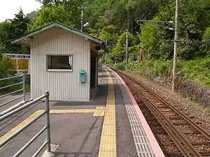The station consists of a single ground-level side platform serving one bi-directional track. The station is unattended. There is no station building, but only a waiting room on the platform.
