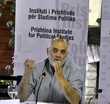 Shkëlzen Maliqi (born 26 October 1947) is a Kosovar philosopher, art critic, political analyst and intellectual. During the early 1990s, Shkelzen was also directly involved in politics. He was one of the founders of the Social Democratic Party of Kosovo and served as its first president from 1991 to 1993. He also held leading positions in civil society organisations such as the Kosovo Civil Society Foundation (1995–2000) and the Kosovo Helsinki Committee (1990–1997).