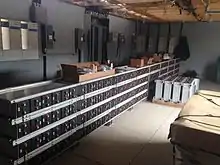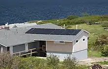 SML maintains three diesel generators and two green energy grids to provide electrical power day and night. Green energy grids collect power from the sun with photovoltaic panels and from the wind with a 7.5 kW Bergy wind turbine. Power collected is stored in sealed absorbed glass mat batteries. There are 52 batteries creating a storage capacity of 388 A·h at a nominal 48 V DC.[15] Stored power is inverted to AC electricity for distribution to the island's 14 buildings. Diesel generators provide backup power. Over the past seven years, addition of photovoltaic power generation with battery storage, along with sustainability and energy efficiency efforts, has:
