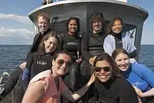 An academic day at Shoals consists of laboratory and classroom time, combined with extensive fieldwork. Fieldwork typically includes excursions along Appledore's rocky intertidal zone and seabird nesting colonies, visits to neighboring islands to study harbor seals, terns, and archaeological sites, off-shore cruises, and trips to the Maine/New Hampshire coast to study mud flats, salt marshes, and bogs. Lessons on sustainable living are incorporated into the experience. Credit course offerings range from survey courses like Field Marine Science to more specialized courses like Field Ornithology, Underwater Research, and Ecology of Animal Behavior.[5] Other programs, workshops, and citizen science opportunities include biological illustration, a course about forensic science, and island archaeology.