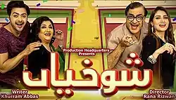 Shokhiyaan is a Pakistani sitcom series produced under banner of Production Headquarters. It features Mehmood Aslam, Hina Dilpazeer, Ahmed Hassan and Anam Tanveer in pivotal roles.[1][2]