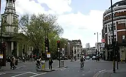 Shoreditch High Street is the old main street of Shoreditch, London. It is part of the A10 road and connects Norton Folgate to the south with Kingsland Road to the north. It constitutes a segment of the Roman Ermine Street, which ran directly north from London to Lincoln and York. The parish church of St Leonard's, Shoreditch is situated at the north-east end of the road, at the crossroads where it meets with Hackney Road.
