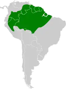 This funarid has a widespread distribution in the northern Amazon rainforest. Its range includes Colombia, Guyana, Suriname, French Guiana, Venezuela, Bolivia, Peru and Brazil, and extends into the Andean foothills up to an altitude of about 800 m (2,600 ft).[1][3]