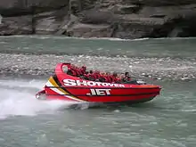 The Shotover River is located in the Otago region of the South Island of New Zealand.[1] The name correctly suggests that this 75-kilometre (47 mi) long river is fast flowing, with numerous rapids. The river flows generally south from the Southern Alps on its journey running through the Skippers Canyon, draining the area between the Richardson Mountains and the Harris Mountains, before flowing into the Kawarau River east of Queenstown.