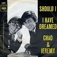 "Should I" is a song written by Chad Stuart and Jeremy Clyde, first recorded by their duo Chad & Jeremy as the B-side to "I Have Dreamed", which became a top-100 hit in the US.[1] The song was arranged by Stuart and was included a week later on their fourth studio album I Don't Want to Lose You Baby.[2]