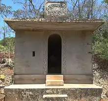 The temple is located in a forest near MSH 115. Devotees have to walk for about 15-20 minutes to reach the temple from the state highway. The only access to the temple is a small stone pathway through the forest land. There are a few mango plantations around the temple premises which are owned by the local people including some Pujare.