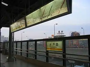 Shuichan Road (simplified Chinese: 水产路; traditional Chinese: 水產路; pinyin: Shuǐchǎn Lù) is the name of a station on the Shanghai Metro Line 3. It is part of the northern extension of that line from Jiangwan Town to North Jiangyang Road that opened on 18 December 2006.[1][2]