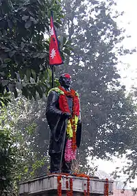 Shastri and the other martyrs are honoured on Martyrs Day which is observed annually on Magh 16 (29 or 30 January) across the country.[15] Shukra Path, a street in downtown Kathmandu, is named after him.[16] Shastri's statues have been erected at a number of places, and the Postal Service Department has issued commemorative postage stamps depicting his image.[17] A monument known as Shahid Gate containing the busts of the four martyrs and King Tribhuvan was built in central Kathmandu in 1961.[18]