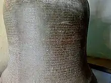 The Shwezigon Pagoda Bell Inscription (Burmese: ရွှေစည်းခုံဘုရား ခေါင်းလောင်းစာ) is a multi-language inscription found on the Shwezigon Pagoda Bell, donated by King Bayinnaung of Toungoo Dynasty and located at the Shwezigon Pagoda in Bagan, Burma (Myanmar). Written in Burmese, Mon, and Pali, the inscription lists the important events in the first six years of his reign. It is the only contemporary record in Burmese that calls the king "Conqueror of the Ten Directions", the title by which he is widely known in Mon and Thai.[1]