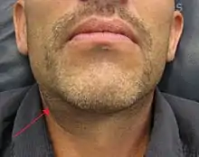 - Lack of saliva coming from the duct (total obstruction).[3]