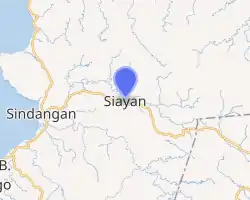 Siayan, officially the Municipality of Siayan (Cebuano: Lungsod sa Siayan; Subanen: Benwa Siayan; Chavacano: Municipalidad de Siayan; Tagalog: Bayan ng Siayan), is a 2nd class municipality in the province of Zamboanga del Norte, Philippines. According to the 2020 census, it has a population of 36,236 people. [3]