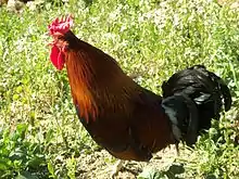 The Siciliana is an ancient breed of chicken from the Italian island of Sicily. It is notable for its unusual double or rose comb, for the early age at which birds reach maturity, and for the unusual shape of the eggs. The Sicilian Buttercup, bred in Australia, Great Britain and the North America, derives from it, but its long separation from the original stock has led to marked differences between the two.