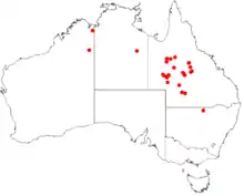 In Western Australia, it is found in the IBRA bioregions of Tanami and Victoria Bonaparte.[4] in the Northern Territory it is found in the IBRA bioregions of Gulf Plains, and Mitchell Grass Downs.[1]