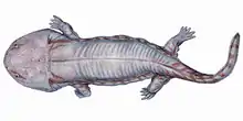Siderops is an extinct genus of chigutisaurid temnospondyl from Early Jurassic of Australia, containing the species S. kehli. It is solely known from the holotype specimen, which consists of a nearly complete skull with mandible and postcrania were found within the Westgrove Ironstone Member of the Evergreen Formation of the Surat Basin in Queensland. dating to the late Toarcian at approximately 176.6 ma.[2] Siderops was large, with a skull width 70 cm (28 in) wide and a total length of 2.7 m (8 ft 10 in).[3]